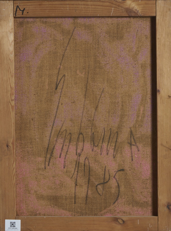 EMBLEMA SALVATORE (1929 - 2006) SENZA TITOLO. 1985. terre vesuviane su tela di juta. Cm 60,00 x 80,00. sul retro: firma e data