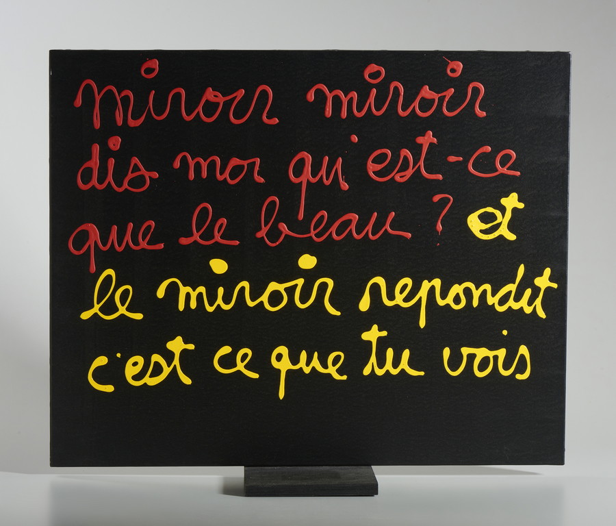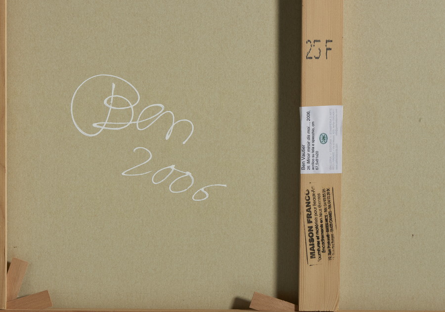 VAUTIER BEN (1935 - 2024) MIRROIR MIRROIR DIS MOI... 2006. acrilico su tela e specchio. Cm 81,00 x 67,50 x 15,00. sul retro: firma, data ed etichetta descrittiva Galleria Il Ponte, Firenze