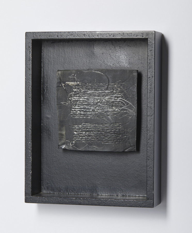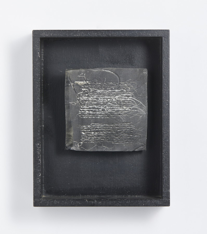 LAI MARIA (1919 - 2013) PAGINA NERA. 1987. Terracotta, china e talco su legno. Cm 27,00 x 35,00 x 7,50. sul retro: firma, data ed etichetta con data e titolo
