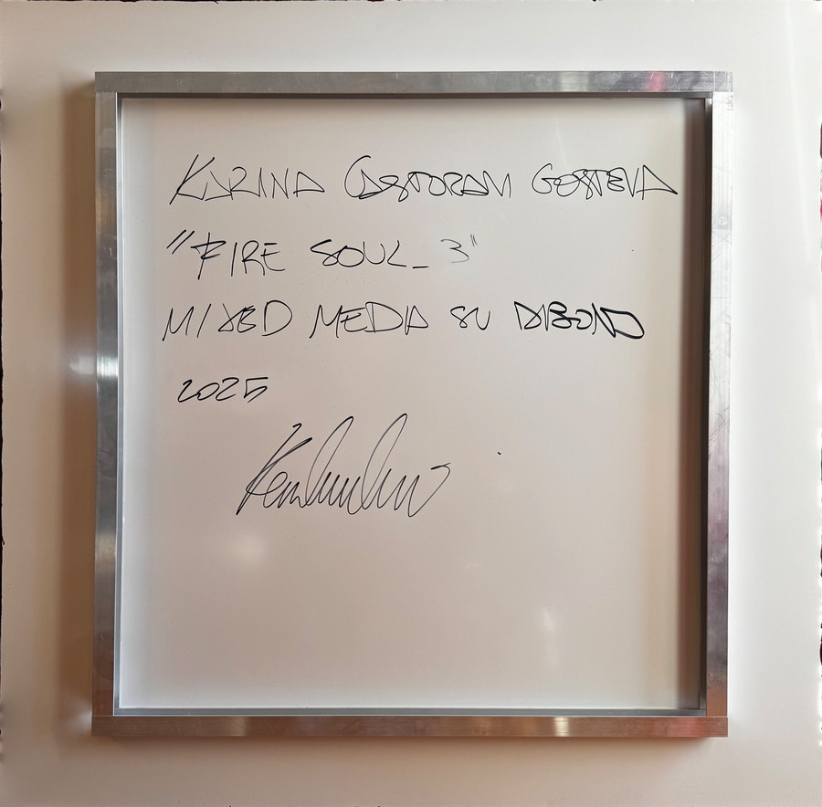CASTORANI GOSTEVA KARINA (n. 1989) FIRE SOUL 3. 2025. Tecnica mista su dibond. Cm 90,00 x 90,00. sul retro: firma, titolo e data
