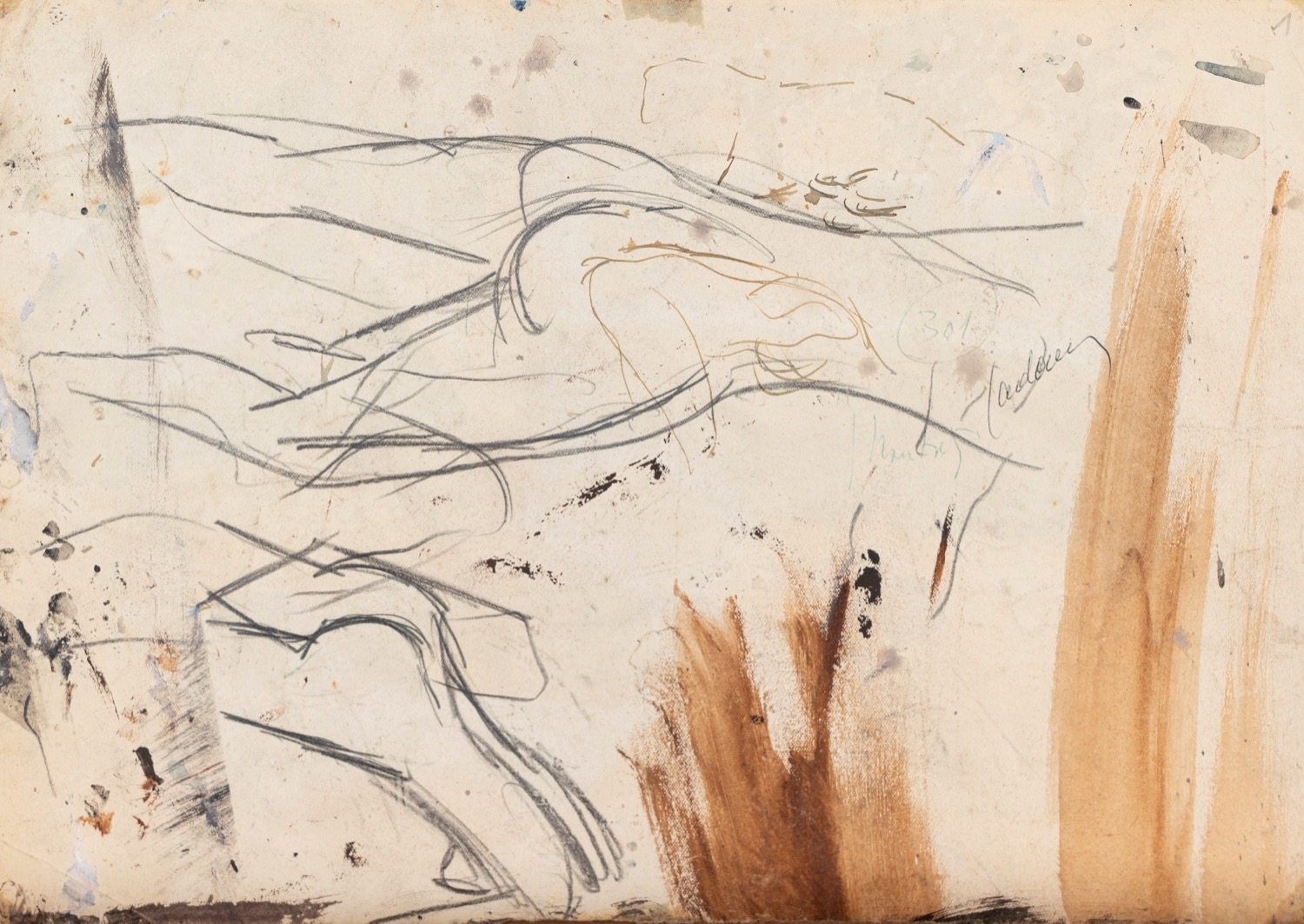 Al verso uno studio architettonico, uno studio di nudi e una scritta autografa