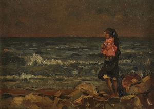 CIARDI GIUSEPPE Venezia 1875-1932 Treviso Marina Olio su tavola 27,5x38 cm