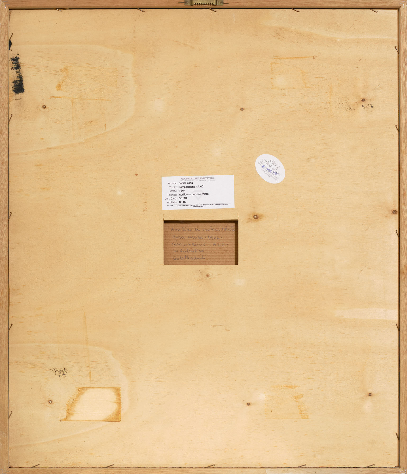 Dichiarazione di autenticità dell'artista sul retro