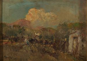 CASCIARO GIUSEPPE Ortelle 1961 - 1941 Napoli Paesaggio Olio su tavola 25x35 cm Firma e data in basso a sinistra Oil on board Signed and dated lower left