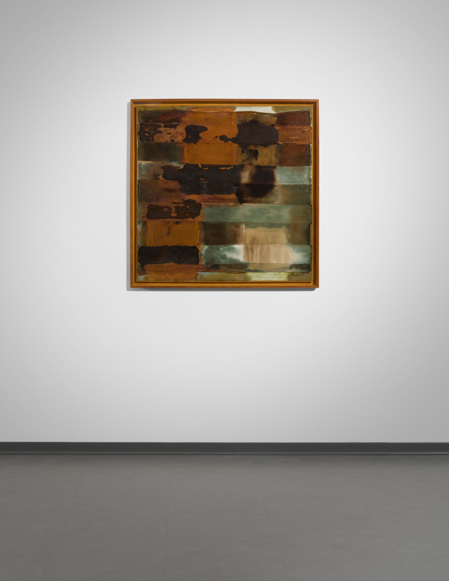 Strisce di tela acidate applicate su tela, cm 110 x 110