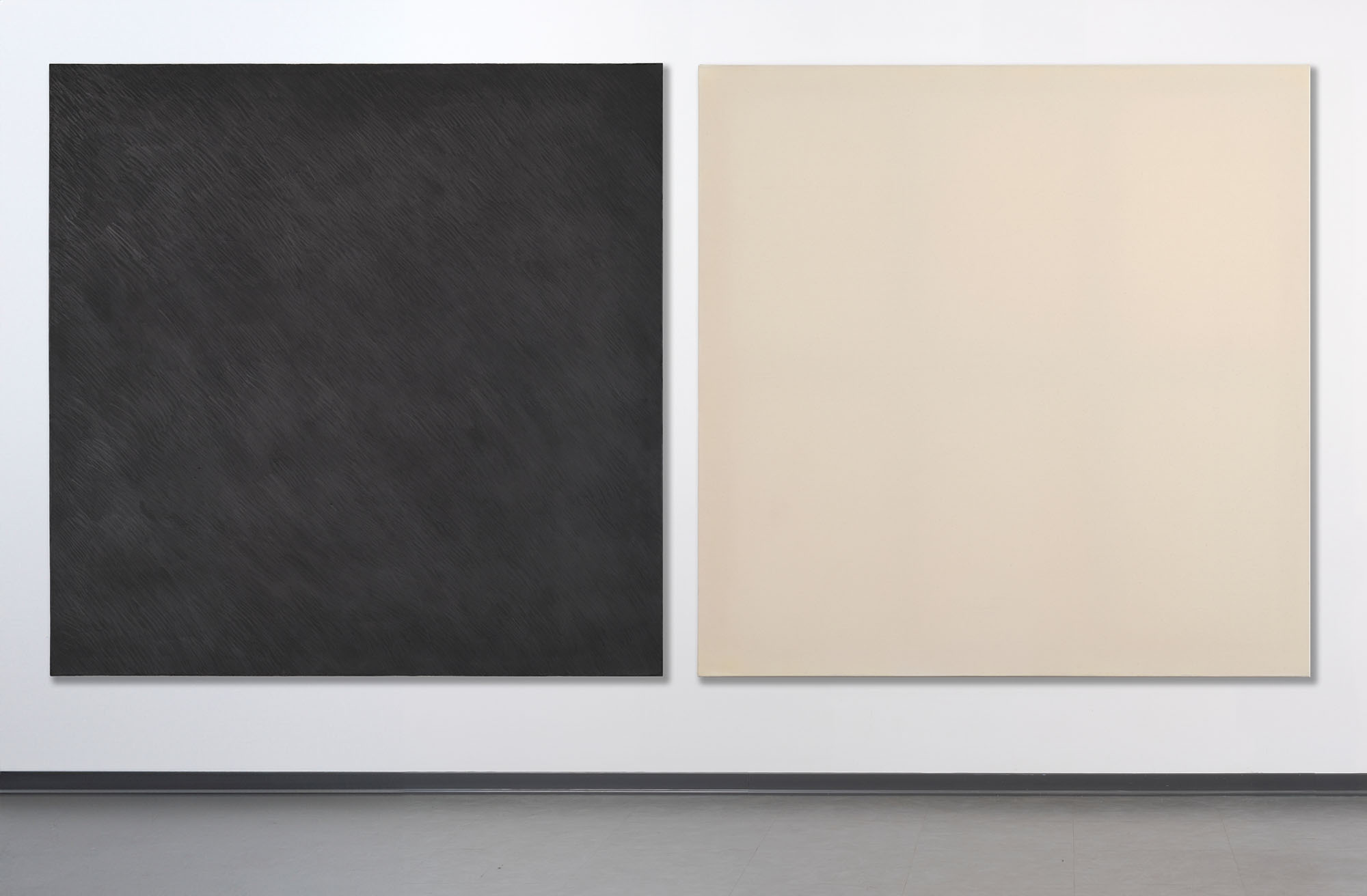 Dittico, smalto e grafite su tela, cm. 180 x 360 (cm. 180 x 180 cad.)