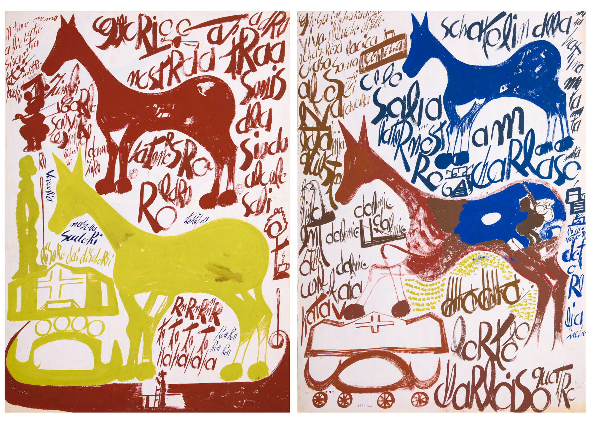 CARLO ZINELLI Due grandi cavalli giallo e bruno - Grande cavallo blu e bruno, 1967