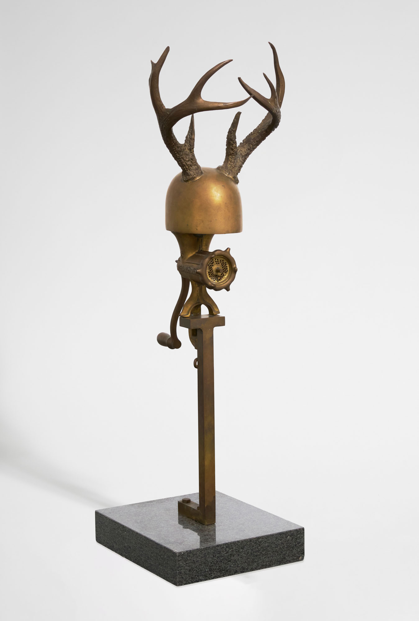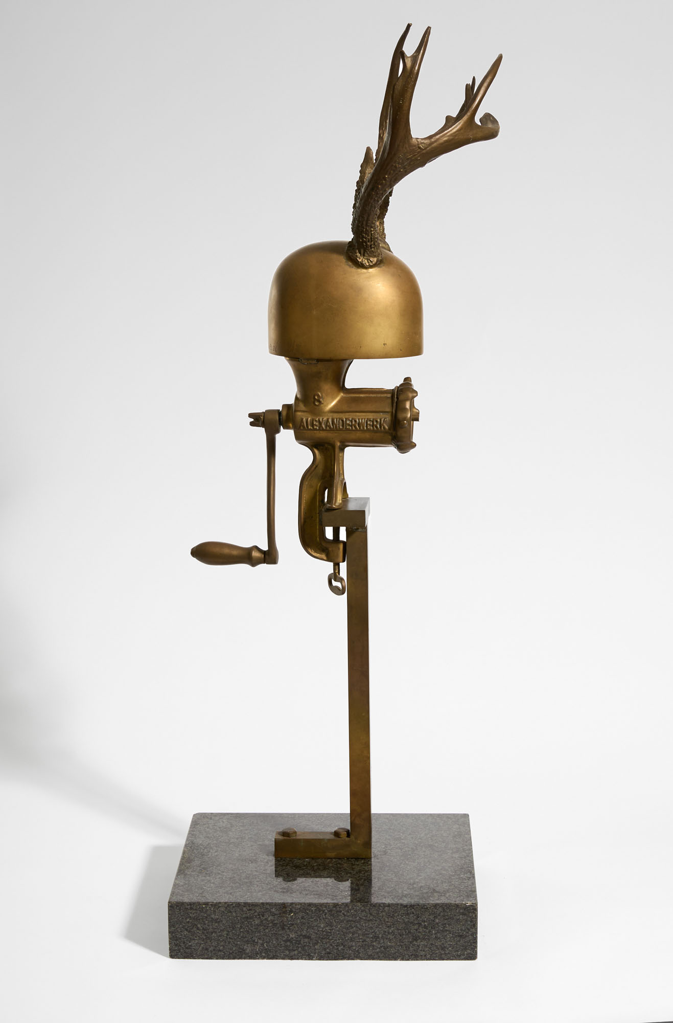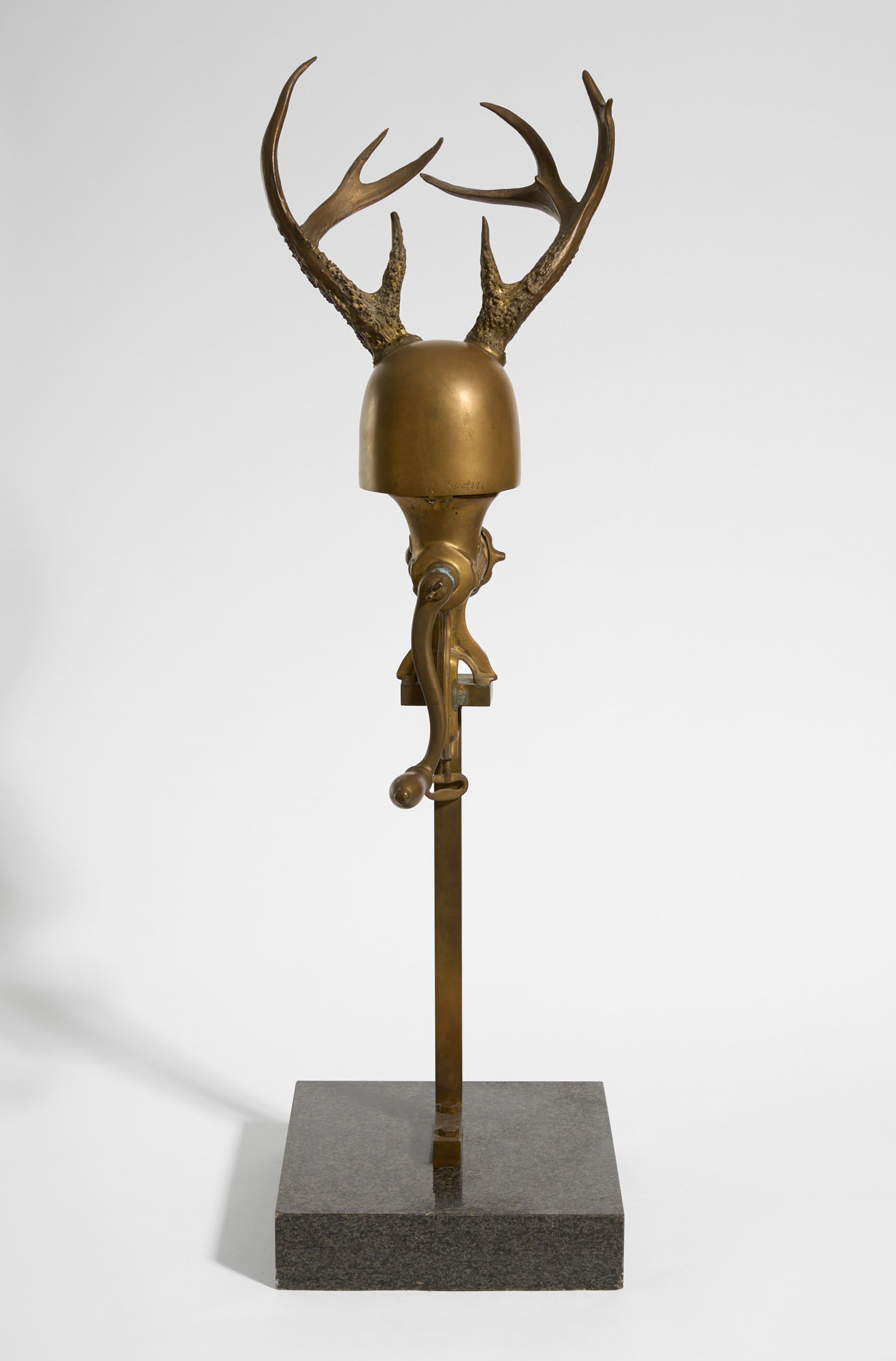 Scultura in bronzo dorato - base in marmo, h cm 104,5