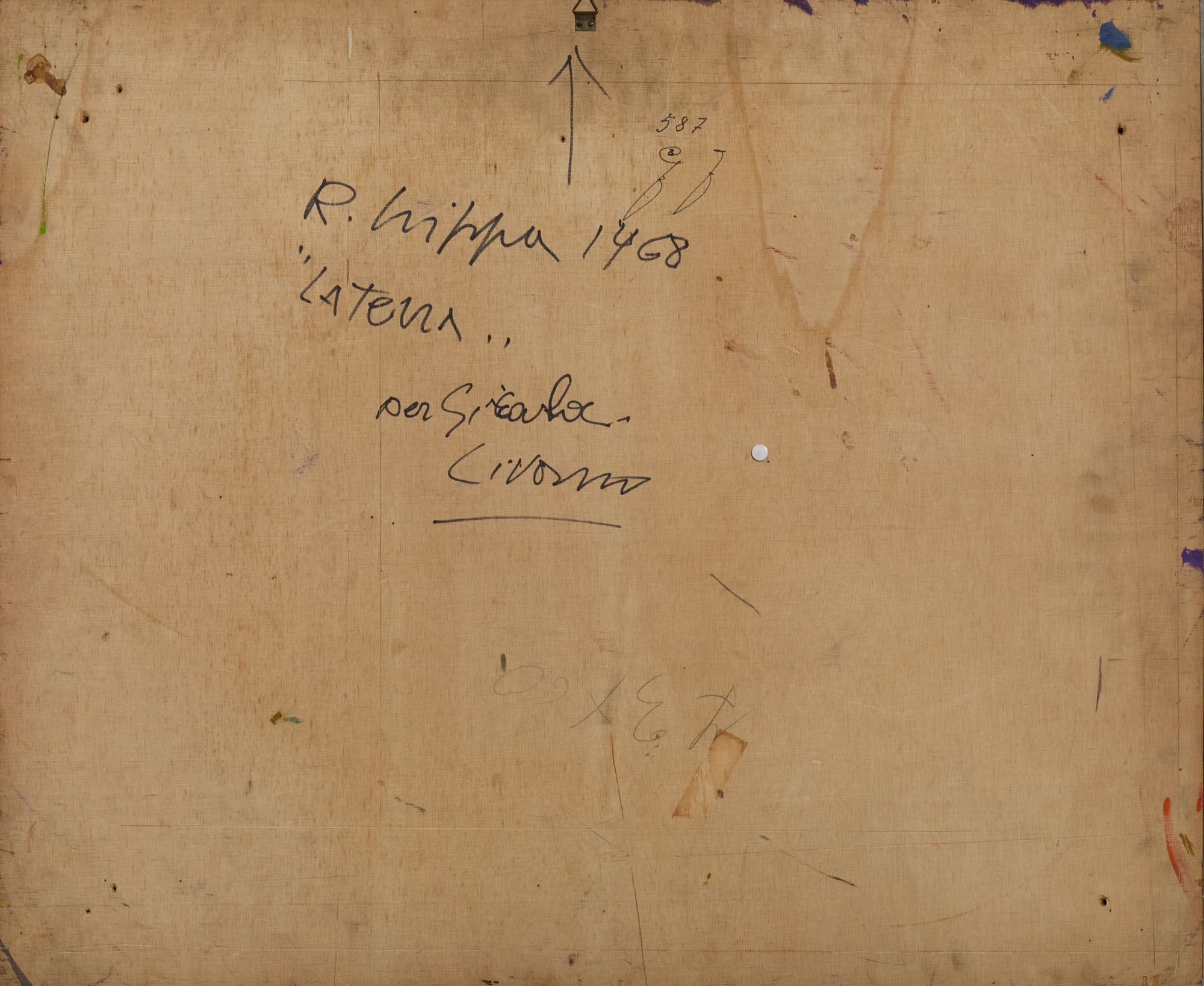 Pittura e amiantite su tavola, cm 60 x 72,5