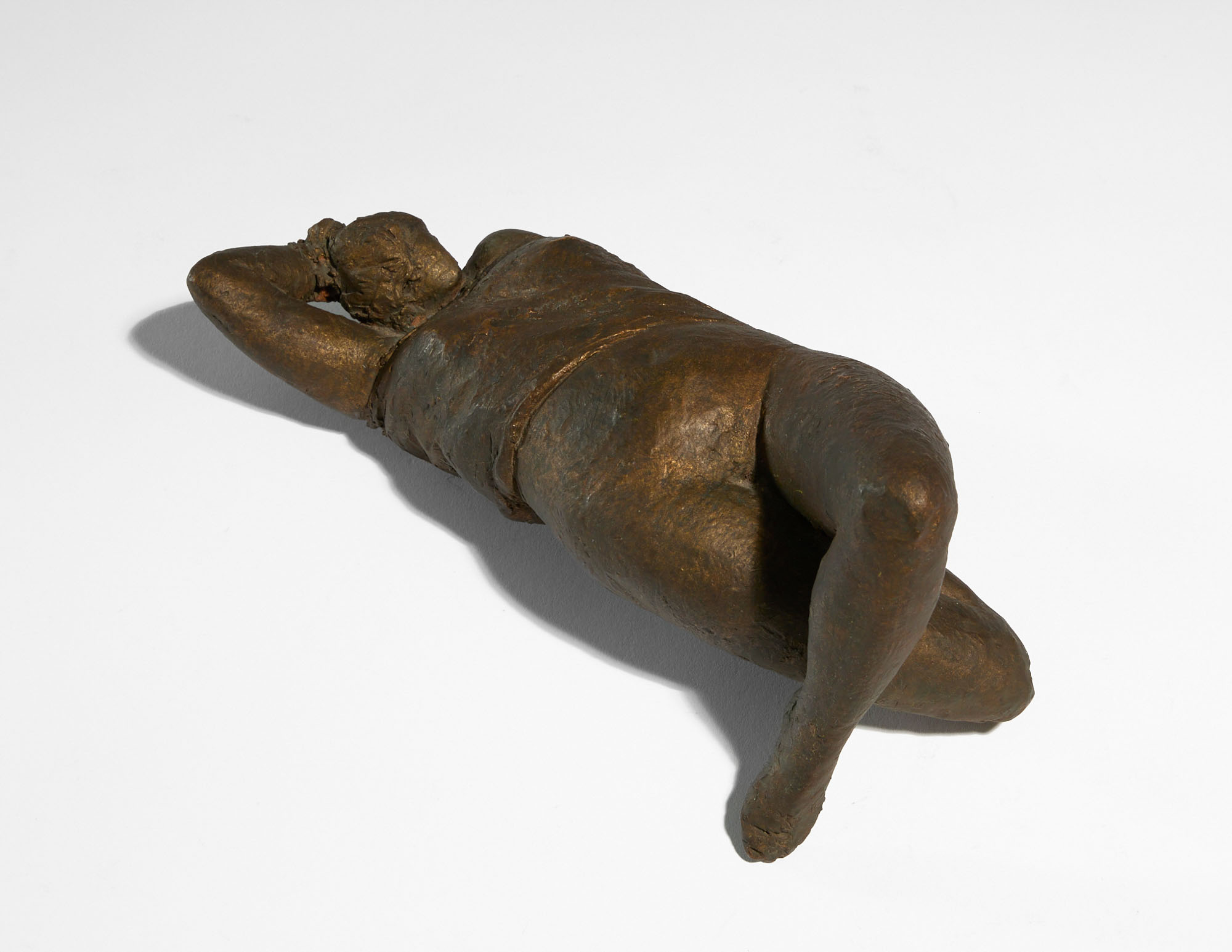 Scultura in terracotta dipinta, cm 15 x 33 x 18