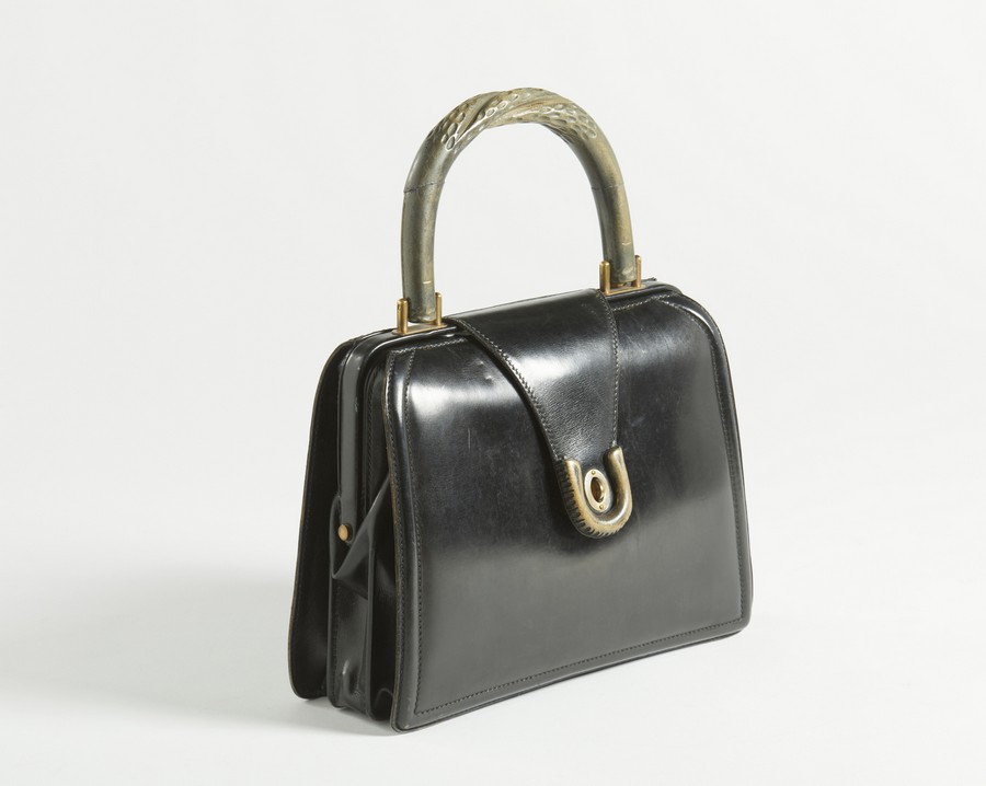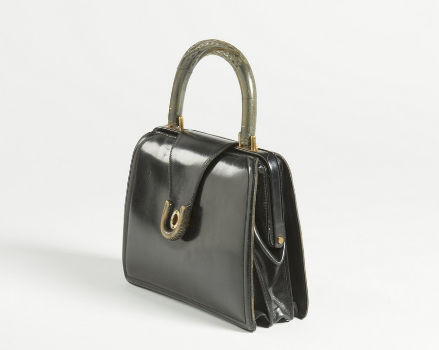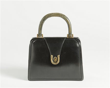 GUCCI Borsa con manici effetto bambù. Pelle. Cm 27,50 x 21,00 x 6,50.