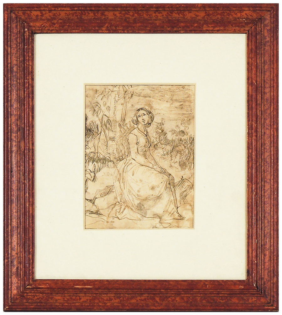 SCORCIO DI PARCO CON DAMA metà del XIX secolo inchiostro su carta, in cornice...