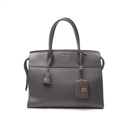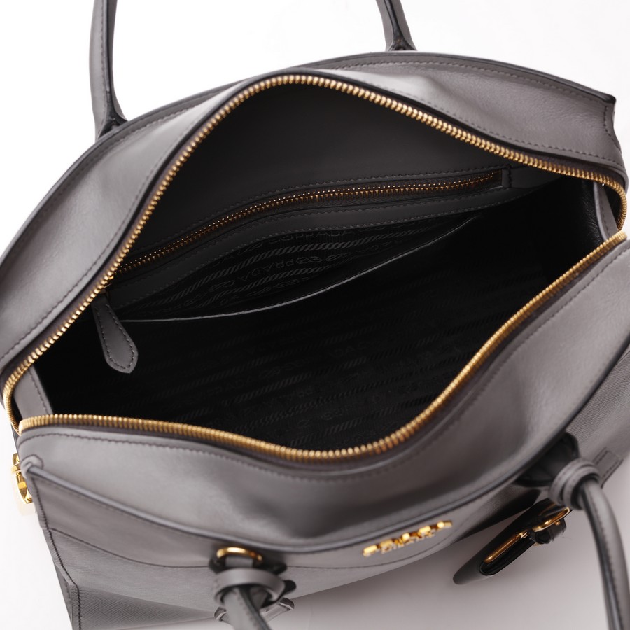 PRADA MILANO Borsa modello Esplanade grigia. Pelle. Cm 31,50 x 24,00 x 15,50. Borsa a mano in pelle martellata grigia. Presente tracolla e sacca per la polvere.