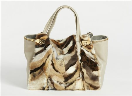 FERRAGAMO SALVATORE Borsa in pelle e visone. Pelle. Cm 41,00 x 32,00 x 23,00.