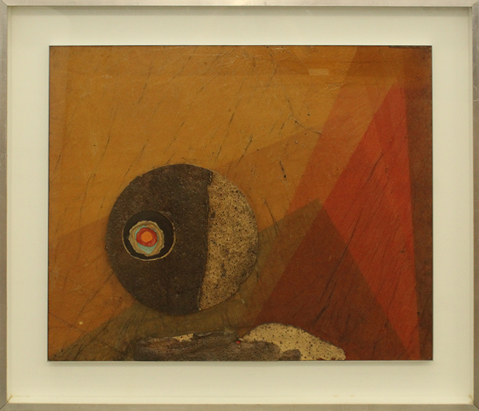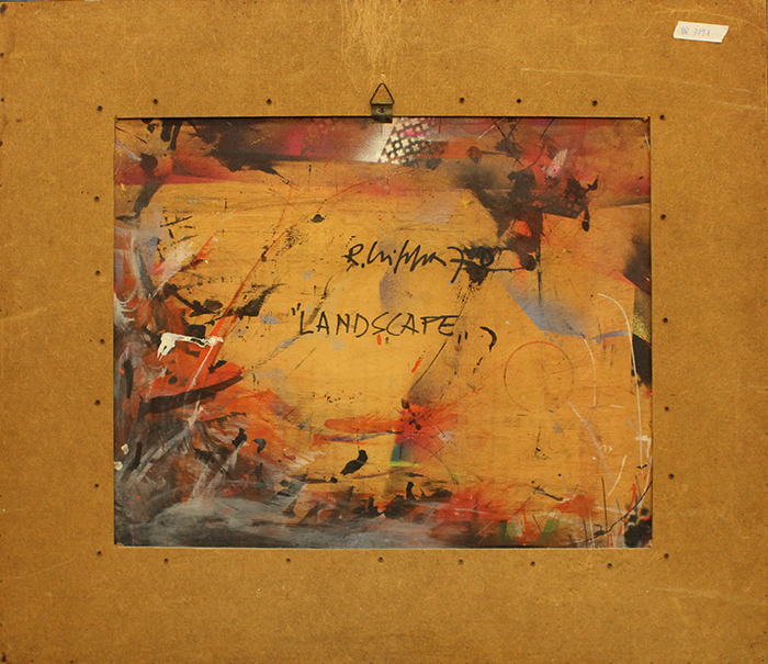 ROBERTO CRIPPA, "Landscape", 1970, tecnica mista e sughero su tavolo, 60x73 cm, con cornice 79x91x4 cm, 10,5 kg. Al verso: firma, anno, titolo, timbro della Galleria Bergamini di Milano. Opera con cornice in omaggio.