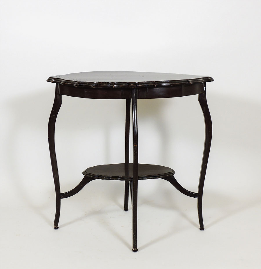 TAVOLINO IN MOGANO Inghilterra, inizio del XX secolo piano sagomato, gambe...