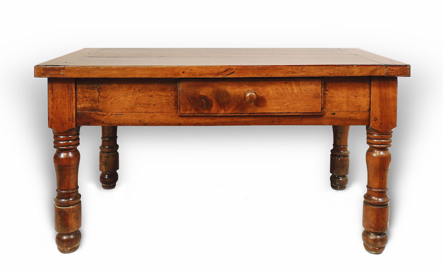 TAVOLO IN NOCE XIX secolo un cassetto nella fascia, gambe tornite h cm 82x149x93 WALNUT TABLE, 19TH CENTURY