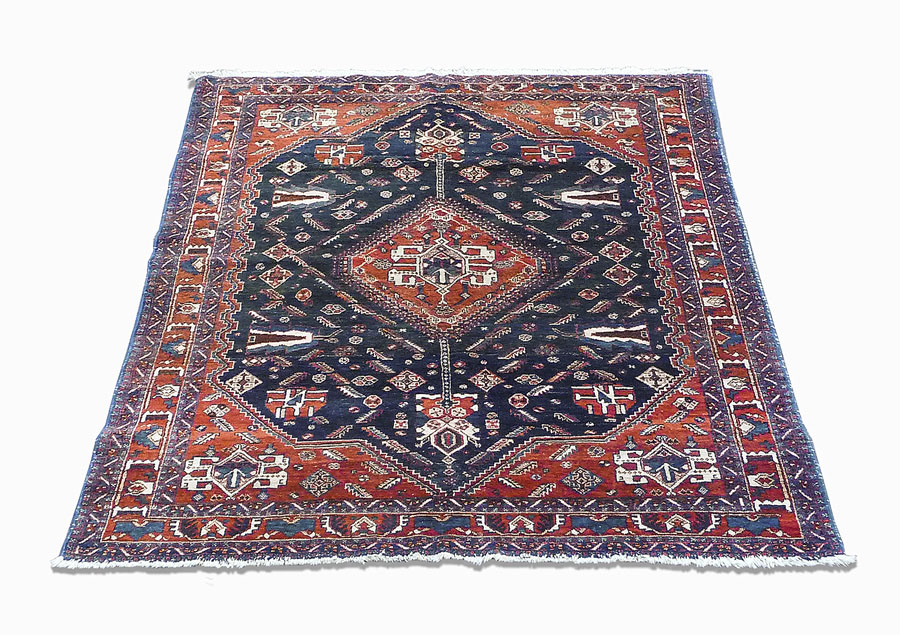 Lot 528 | TAPPETO PERSIANO D'EPOCA fondo blu notte, campo con motivi geometrici e...