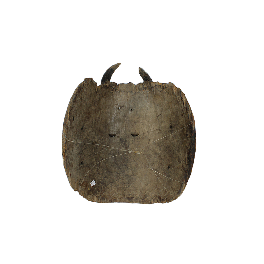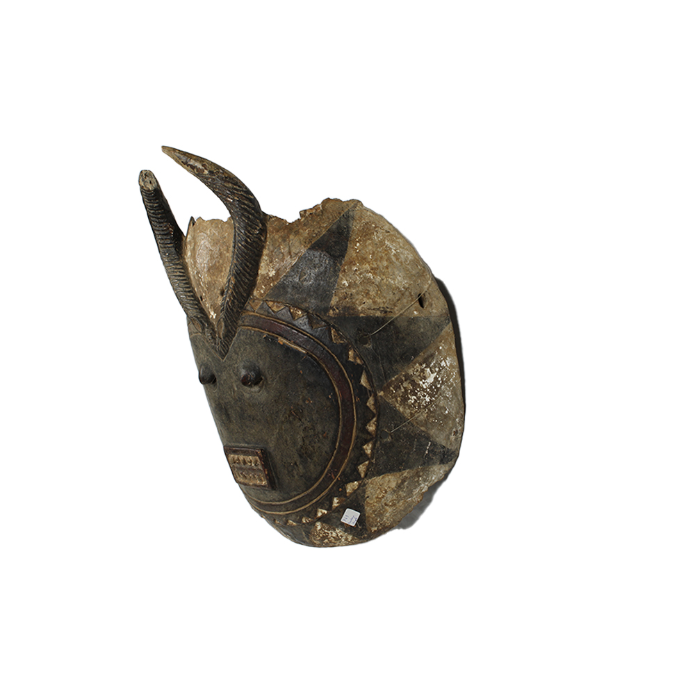 MASCHERA KPLE KPLE YASWA etnia baule, in legno policromo, maschera madre che rappresenta il matrimonio tra il sole e la luna, ha funzioni di protezioni per il villaggio. Costa d'Avorio h cm 50 x 39 x 24