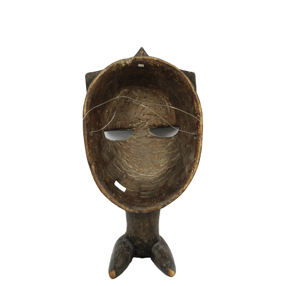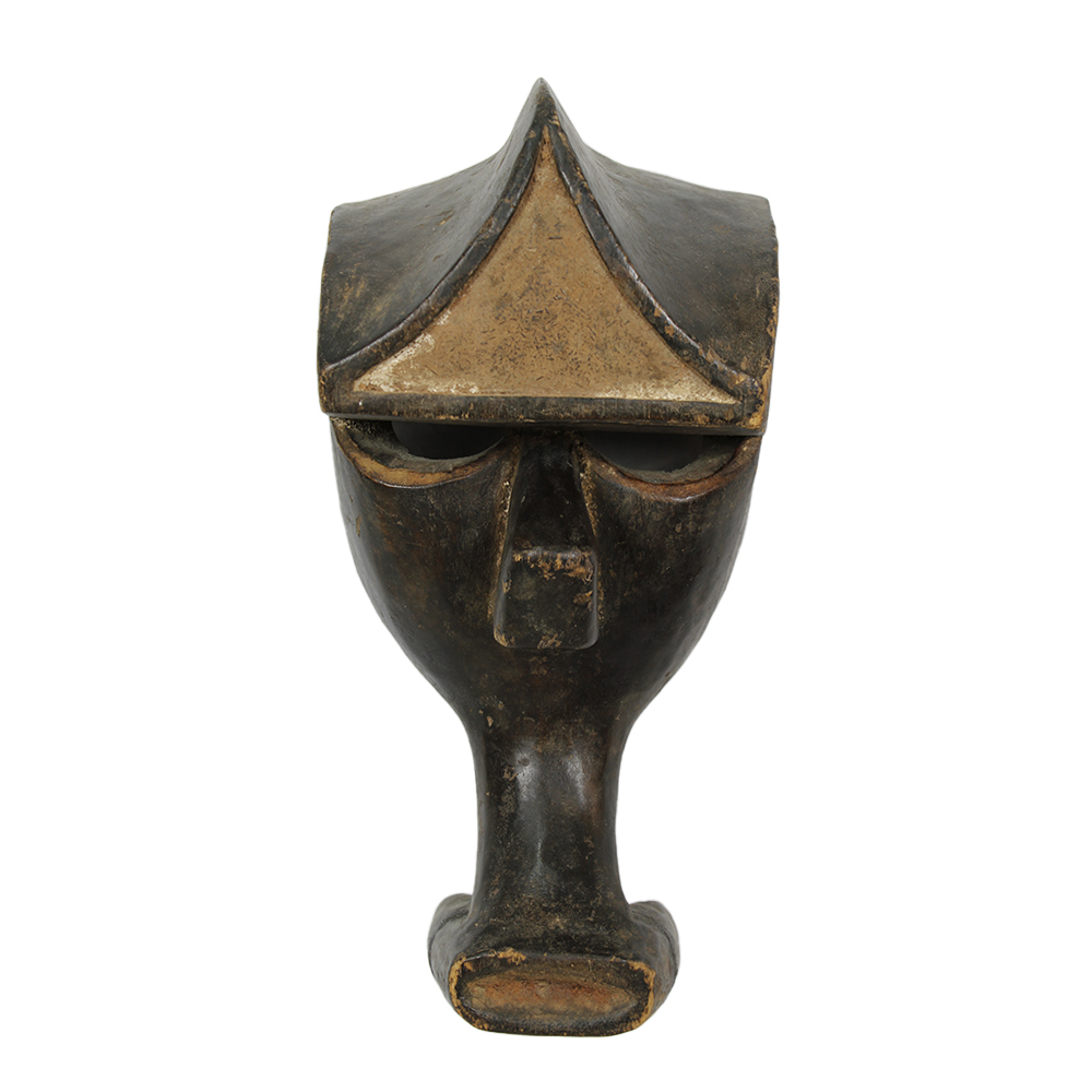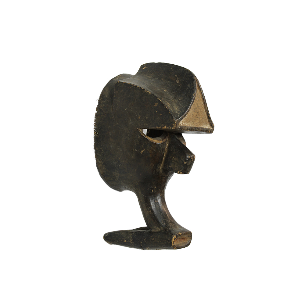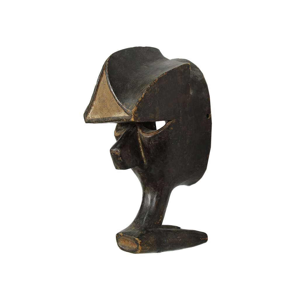 MASCHERA GONG BAKWELE in legno parzialmente dipinto con pigmenti naturali. La maschera Gong ha funzione giudiziaria per la comunità. Gabon h cm 37 x 19 x 18