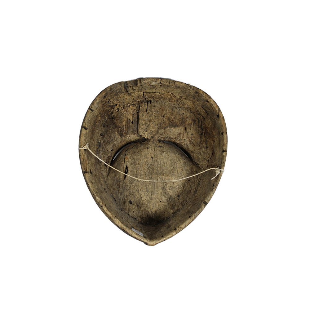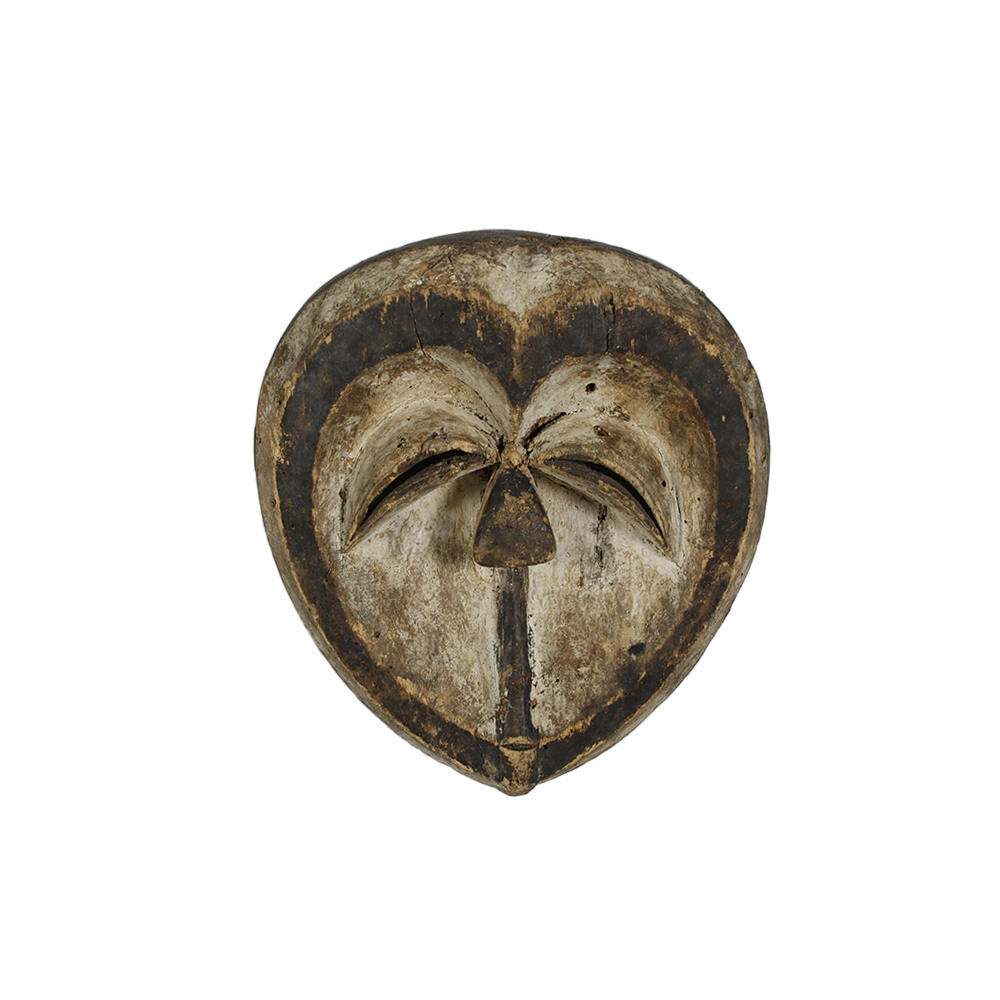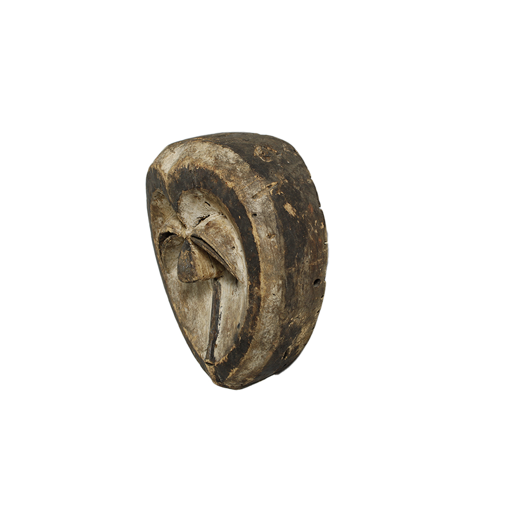 MASCHERA FACCIALE PIPIBUDZE' etnia Kwele in legno leggero e pigmenti, collegata ai riti Bwiti al fine di stabilizzare la società'. Riti con sincronicità con elementi del Cristianesimo. Gabon h cm 27 x 24 x 8