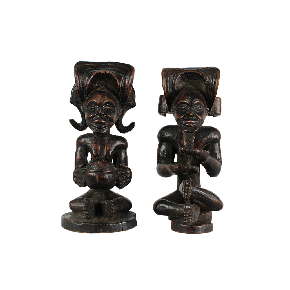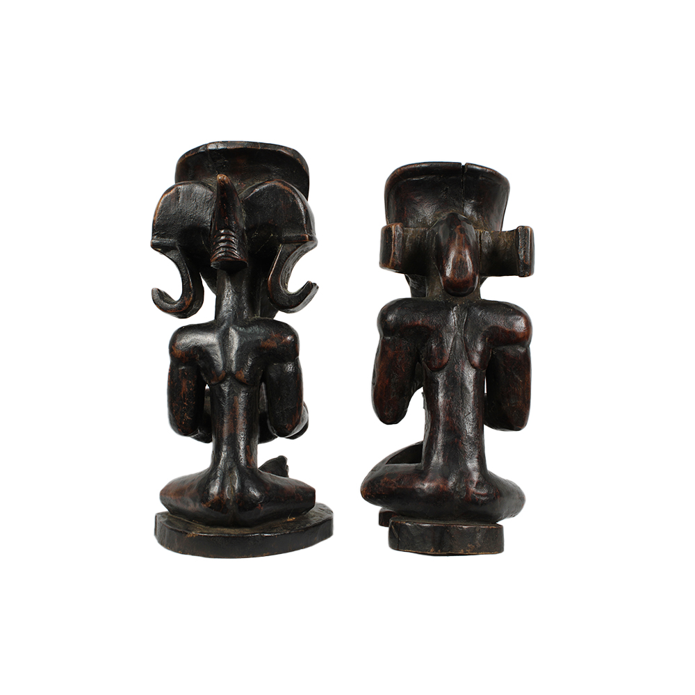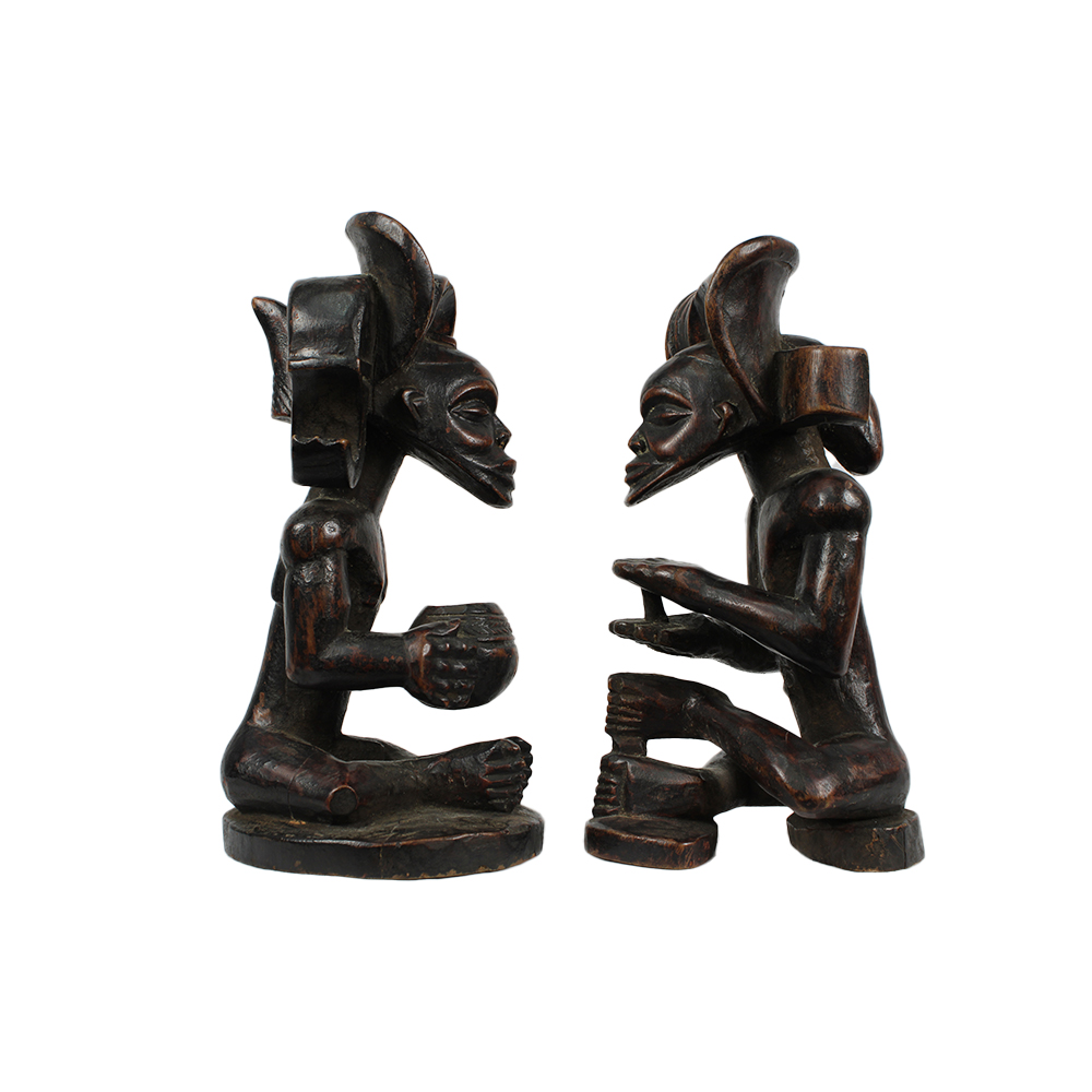 SCULTURE DI ANTENATI KYPONYA WA MWANANGANA etnia Baciokwe, in legno patina nero rossastra, statue come queste erano destinate per onorare il grande cacciatore Thshibinda. Repubblica democratica del Congo h cm 27 x 12 x 15