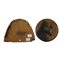 LOTTO DI 2 PIATTELLI LABIALI in legno e terracotta etnia Surma valle del Kibish. Crepa su un piattello cm Ø 12 - h cm 12 x 16,5