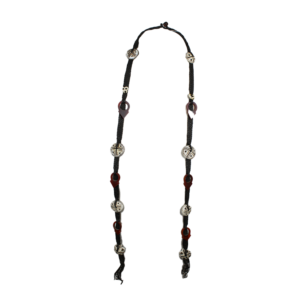 ORNAMENTO DA TESTA per danzatrici di Guedra etnia mauri, in cuoio conchiglie e corniole. La danza guedra rappresenta un rituale d'amore tra i mauri e nel Marocco. Mauritania cm 67