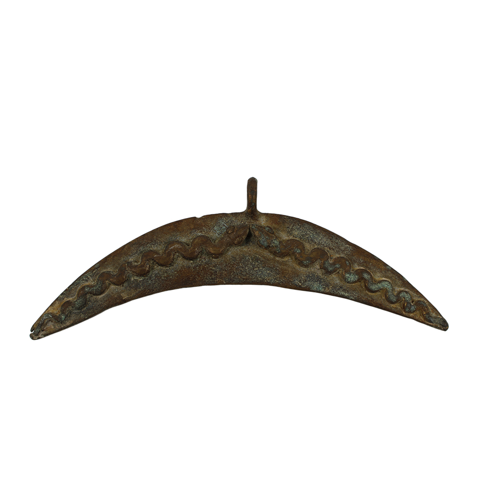 AMULETO etnia Senufo in bronzo, ha funzione protettiva in quanto il serpente è associato alla figura degli antenati, capace di entrare fin dall'inizio dei tempi nelle viscere della terra. Costa d'Avorio h cm 2 x 13