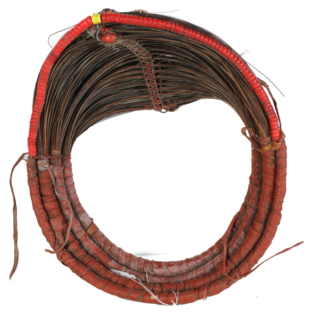COLLANA PER DONNA SPOSATA MPOORO ENGORIO in peli di coda di elefante, stoffa perle di vetro, semi grasso di animale ed ocra, indossata dalle donne sposate durante delle cerimonie si crede che possa essere di auspicio per la fertilità. Samburu o Rendille h cm 31 x 27 x 14