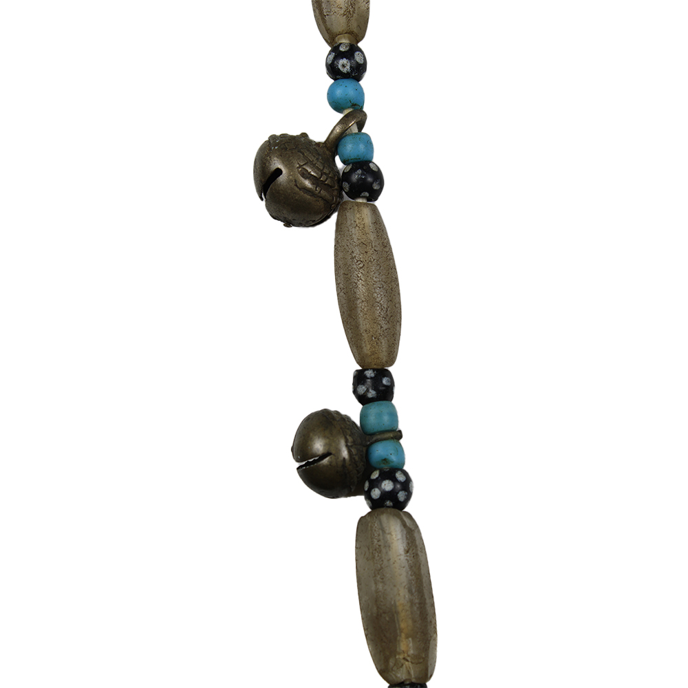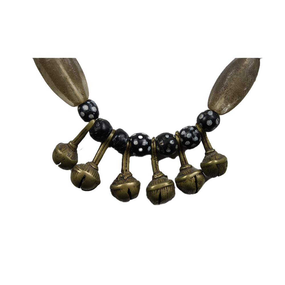 COLLANA DA DONNA AO NAGALAND in perle di vetro colorate cristalli di rocca campanellini di rame . India cm 53