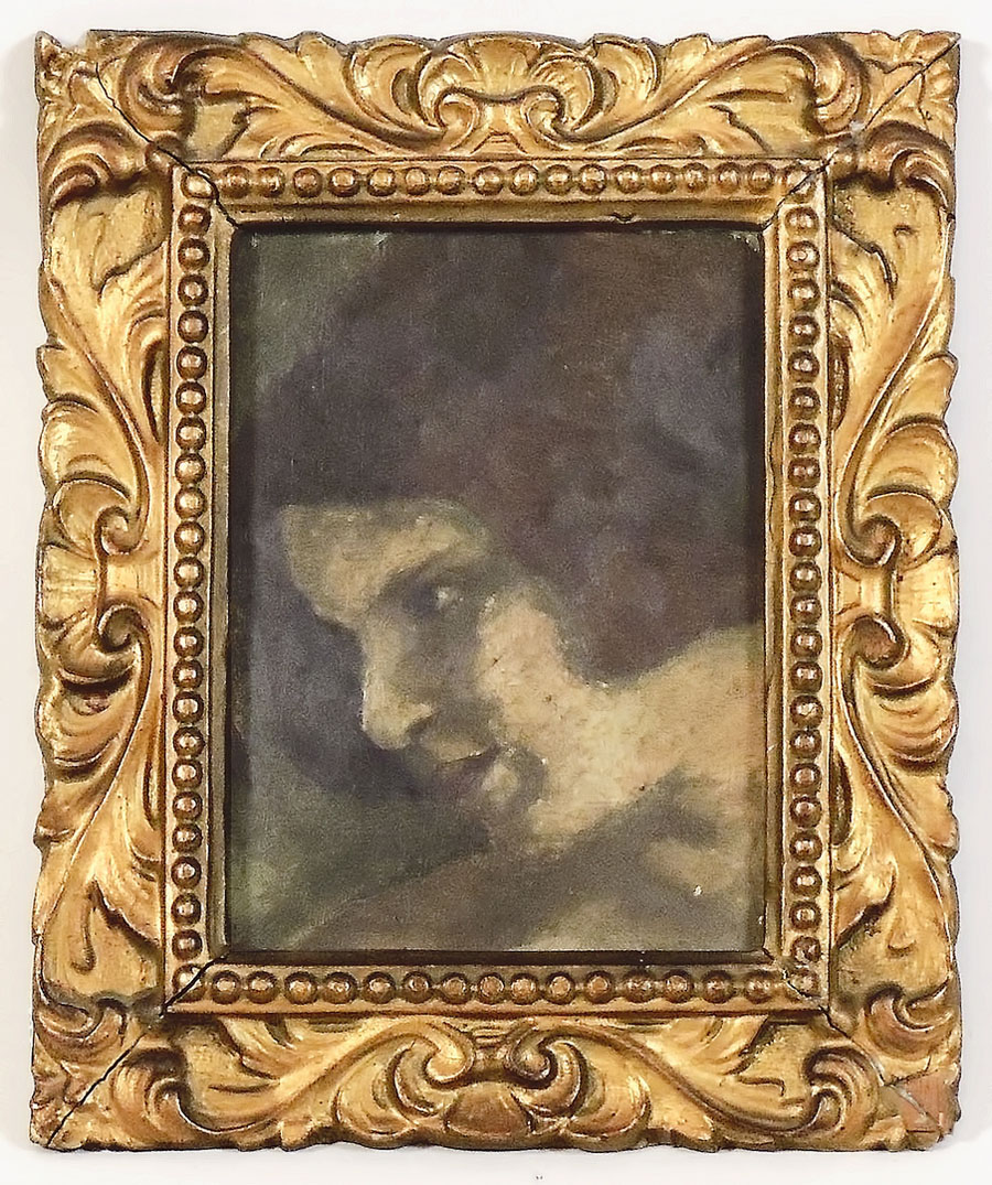PROFILO FEMMINILE prima metà del XX secolo olio su cartoncino, in cornice cm 17,5x12,5 FEMALE PORTRAIT, FIRST HALF OF 20TH CENTURY, OIL ON CARDBOARD