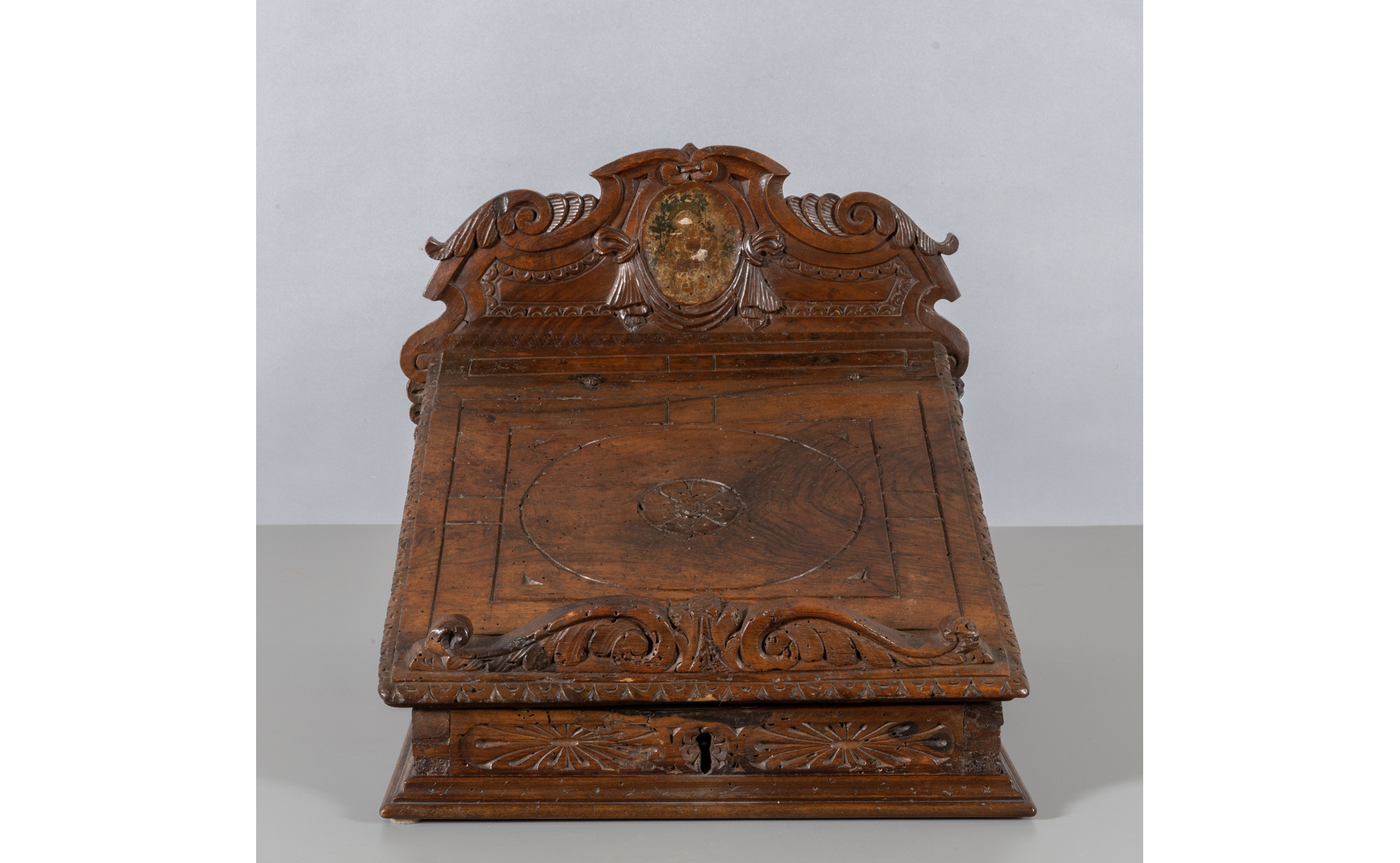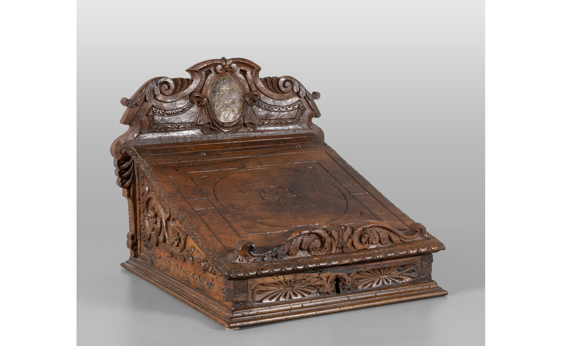 Leggio da tavolo in noce finemente scolpito a motivi floreali Toscana sec.XVI