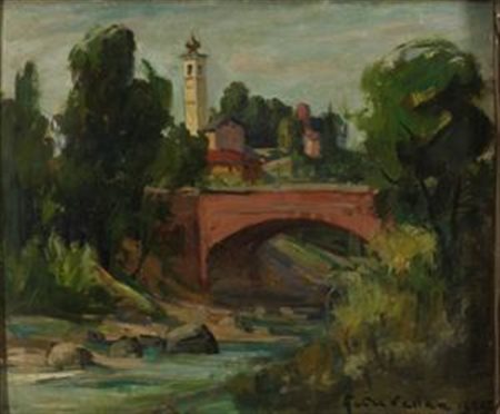 VELLAN FELICE 1889 - 1976 Demonte 1955 Olio su cartone 50x60 cm Firma e data...