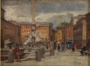 BOETTO GIULIO Torino 1894 - 1967 Piazza Navona 1950 Olio su tavola 23,5x32 cm Firma e data in basso a destra Già Galleria Fogliato Torino, etichetta al retro. Oil on board Signed and dated lower right