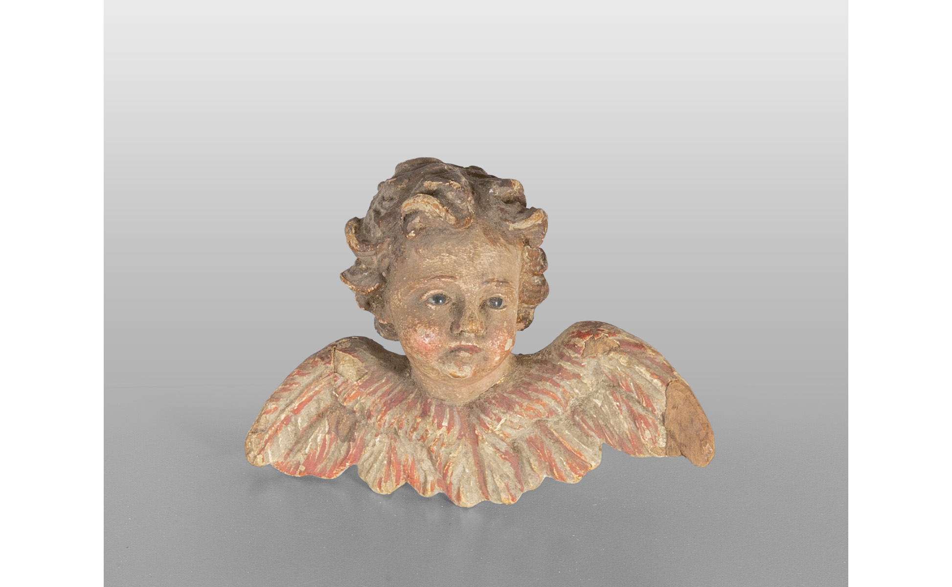 Testina di angelo volante scultura in legno policromo Napoli sec.XVIII