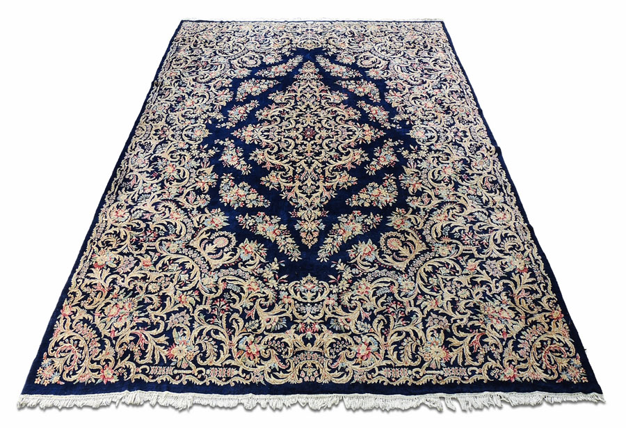 TAPPETO PERSIANO NAIN fondo blu notte, campo con motivi floreali multicolori, volute e girali intrecciati nei toni dell'avorio e del rosa cm 410x300 PERSIAN NAIN CARPET