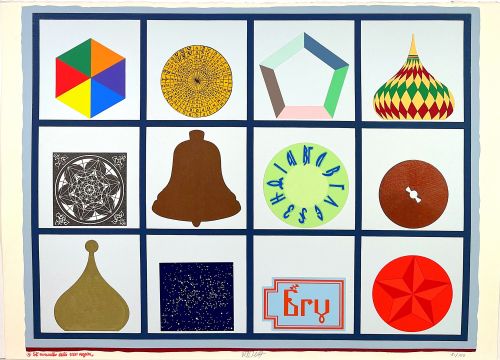 Serigrafia su carta da acquarello pregiata “Arches” con elementi frustellati incollati a mano, cm 56x76