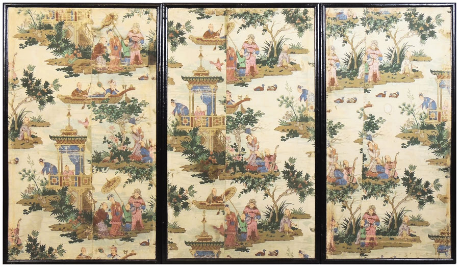 PAESAGGI E PERSONAGGI Cina, XIX secolo serie di tre serigrafie oerientali a...
