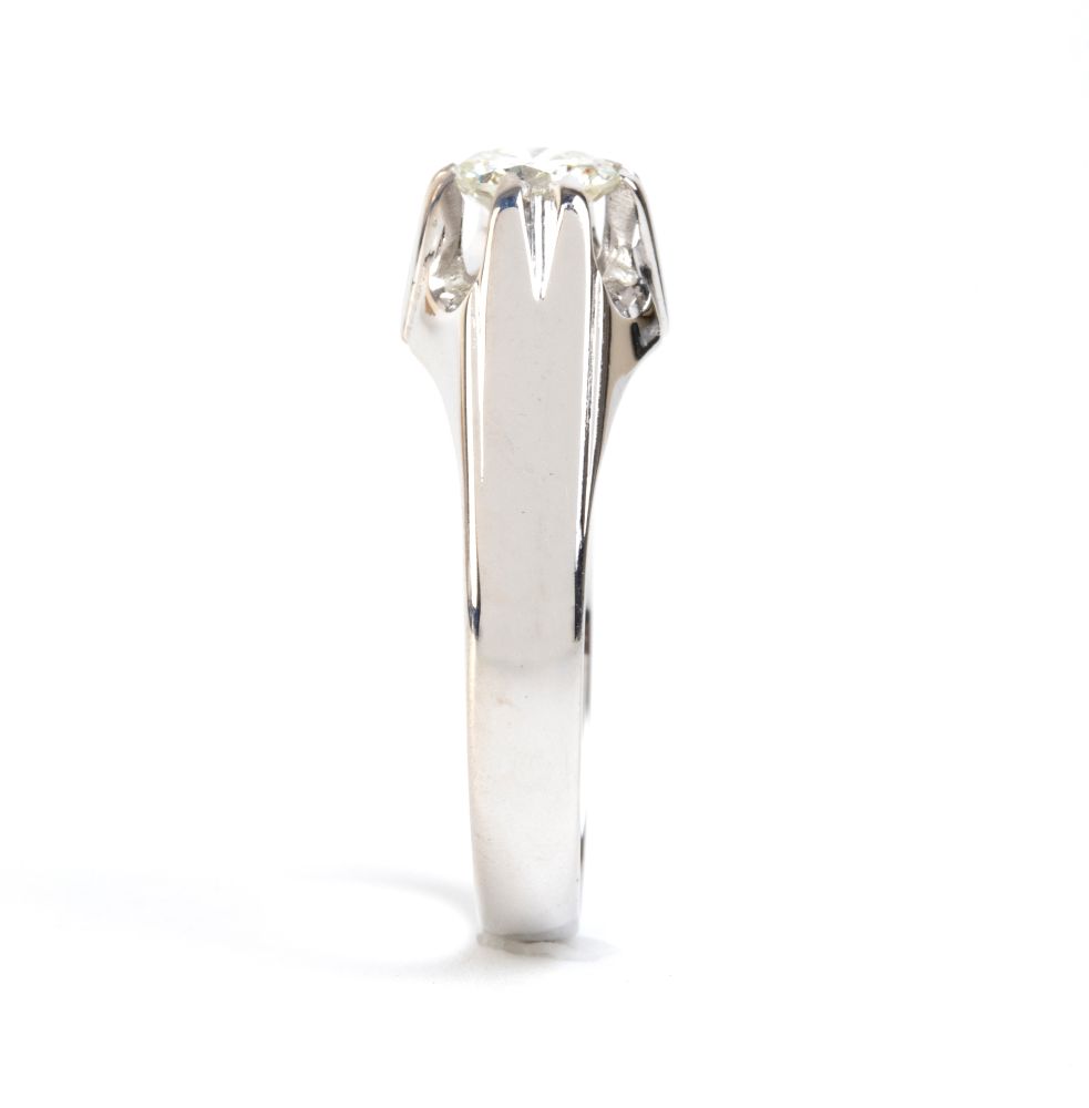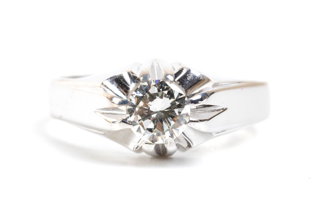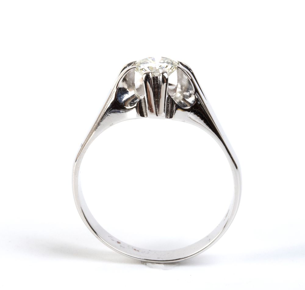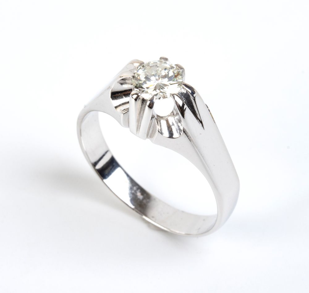 in oro bianco 18k, incastonato con diamante taglio brillante stimato per un peso di circa 0.75 ct, colore H-I, purezza VS.