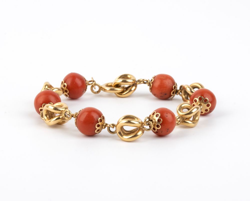 Punzonato “750 - 16 AL”. Lunghezza: 20 cm. Diametro corallo: 10 - 10.5 mm. Peso: 18.5 gr.