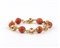 con catena a maglie fantasia in oro giallo 18k interrotta da sfere di corallo Mediterraneo (Corallium Rubrum).