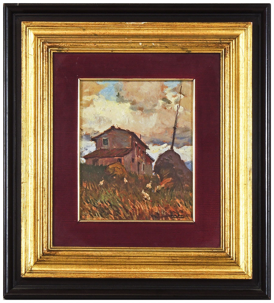 GIORGIO LUXARDO Casa colonica olio su tavoletta, firmato, al verso titolato e firmato, in cornice cm 20x15 FARMHOUSE, OIL ON PANEL