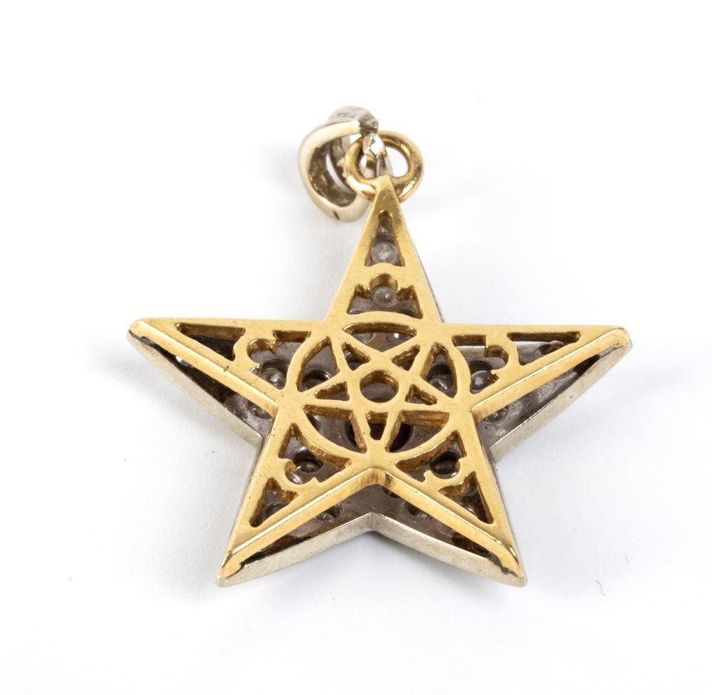 Pendente a stella in oro con rubino e diamanti