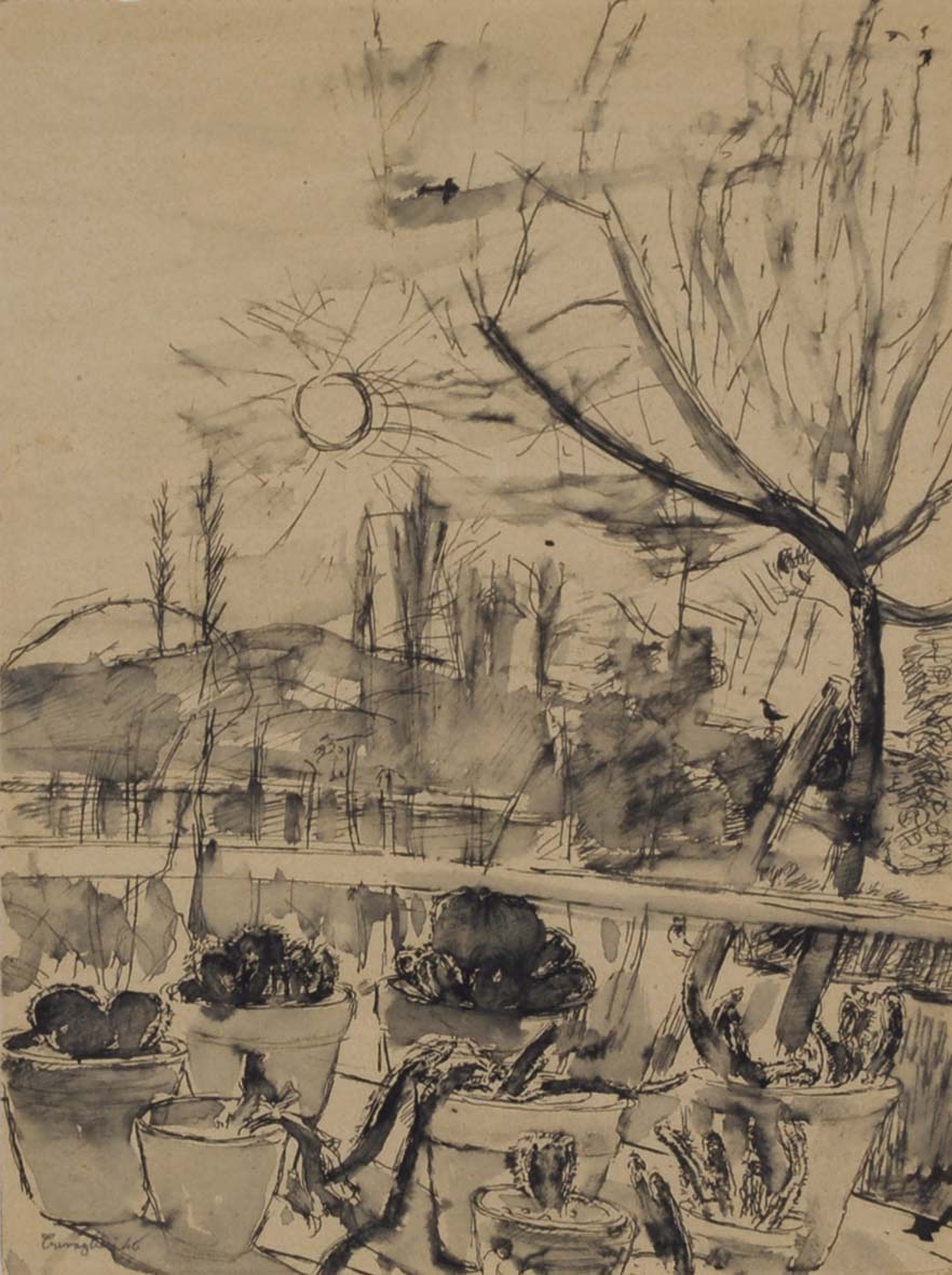 CAVAGLIERI MARIO Rovigo 1887 - 1969 Paesaggio 1946 disegno a china acquerellata su carta 32,5x24 cm firma e data in basso a sinistra