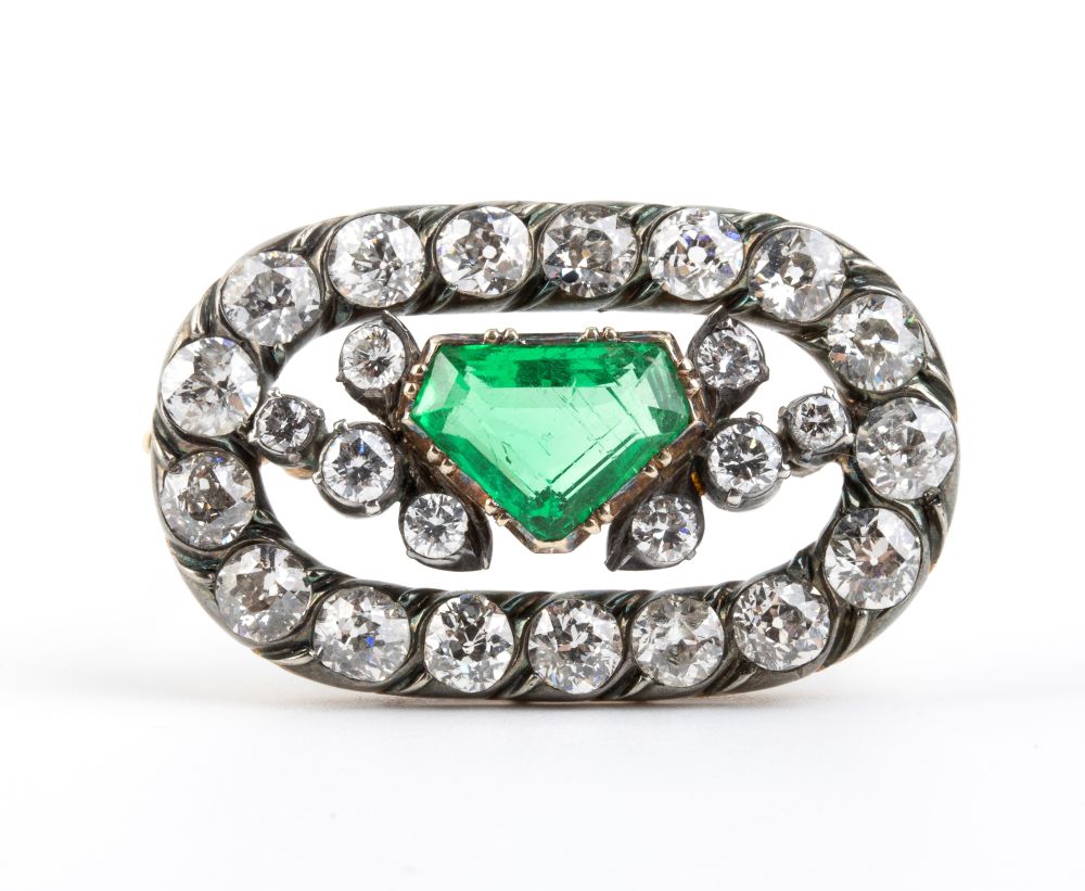 Lot 209 | Spilla in oro con diamanti e smeraldo fine XIX secolo