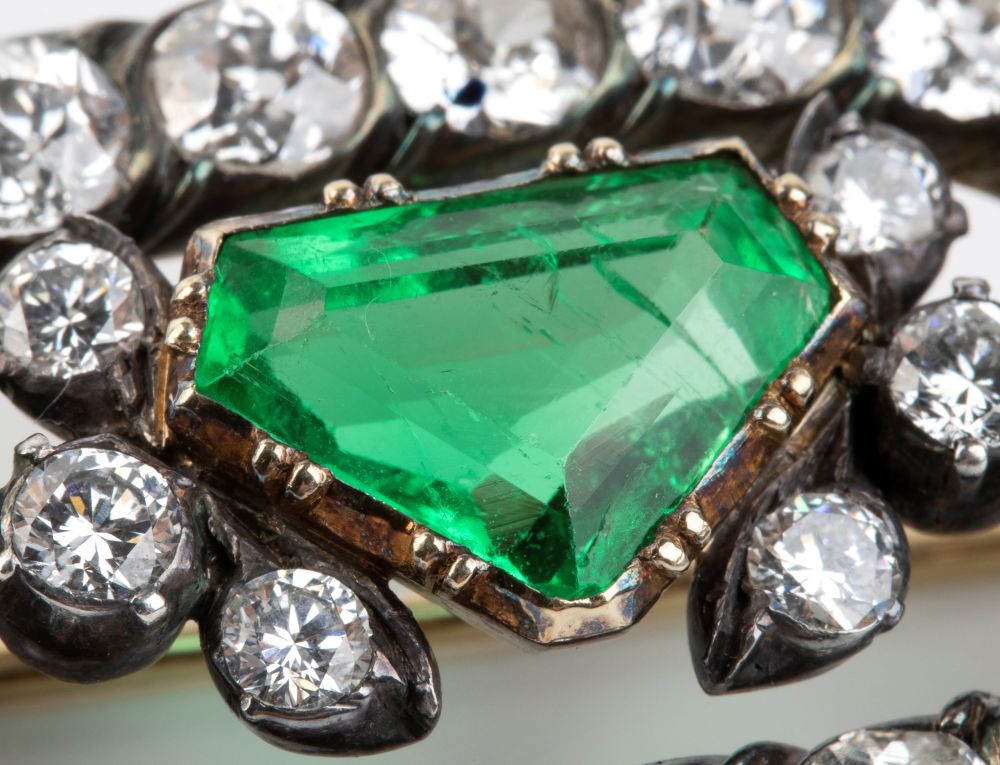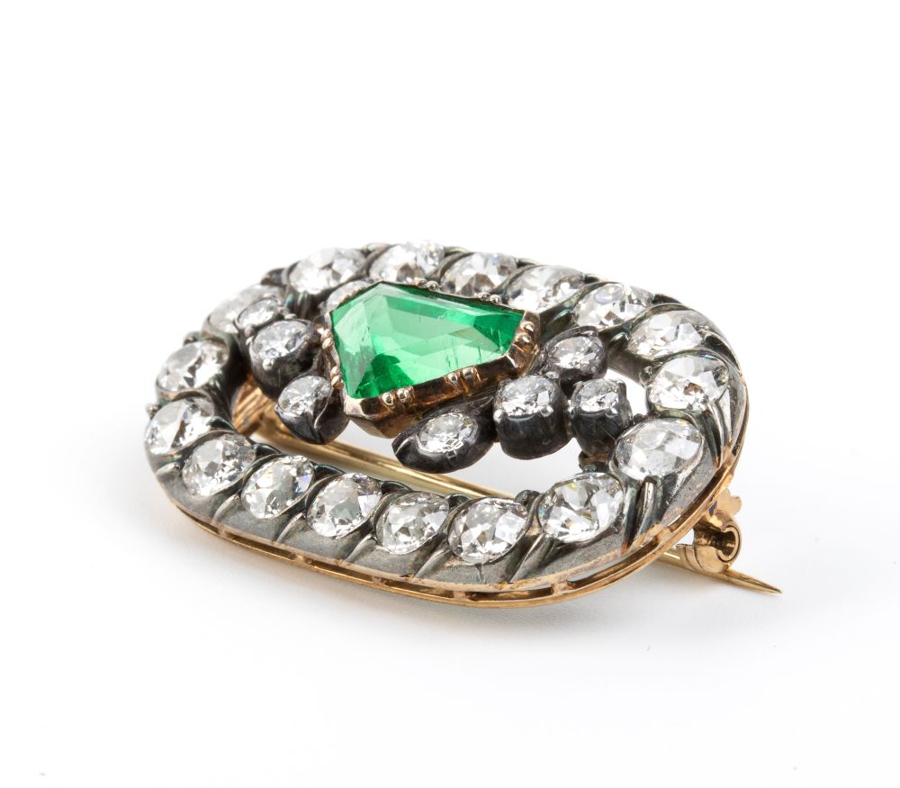 Spilla in oro con diamanti e smeraldo fine XIX secolo