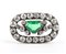 in oro bianco ed oro giallo, di forma ovale, incastonata con smeraldo contornato da diamanti taglio brillante e taglio vecchia miniera.