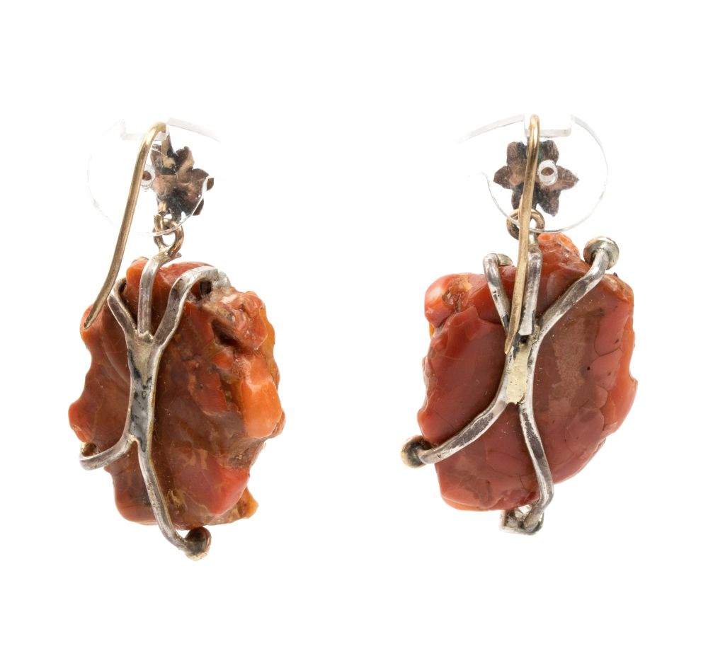 Paio di orecchini in corallo Mediterraneo, oro e diamanti Italia, Torre del Greco, XX secolo