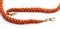 piccole sfere di corallo rosso del Mediterraneo (Corallum Rubrum) lavorato tessito ed a motivi floreali, montatura in rame.
